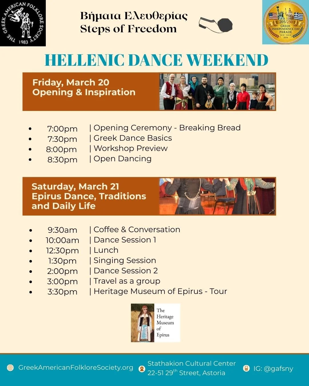 The Hellenic Dance Weekend will occur March 20, 21, 22. This is part of a series of events leading up to the Greek Independence Day Parade which will take place on Sunday, April 26.